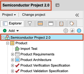 Explorer Tree — Select the main project level in the Explorer Tree or select the name of the project just above the Explorer Tree.