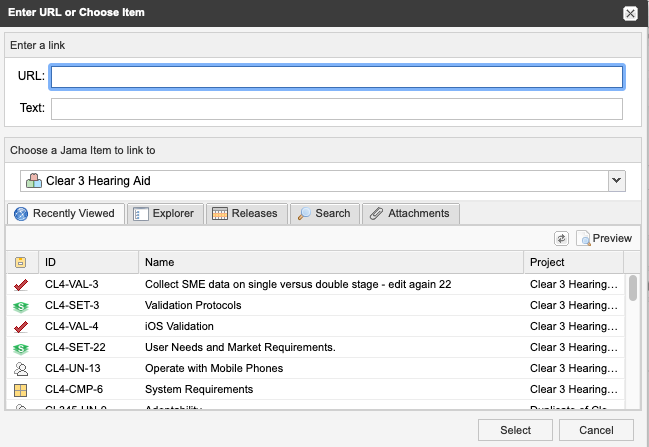 Direct links to attachment files can be helpful to reviewers. You can link from a rich text field directly to other sets, items, and attachments in Jama Connect, or to an external link.
