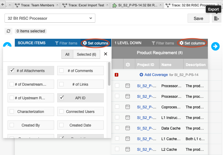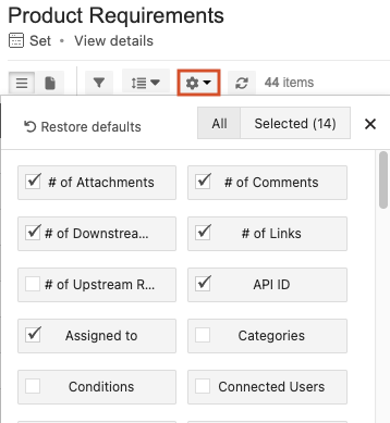 Choose which fields are visible for each item as it appears in Projects List View or Trace View.