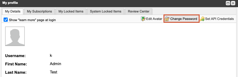 Users configured with Basic Authentication can change their password from the My Profile window or from the login screen.