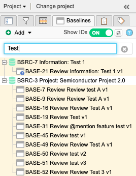 A baseline captures the relationship between your selected project components, as well as their state. For example, Draft, Reviewed, and Approved.