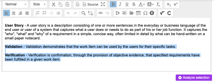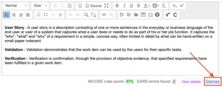 Edit the text, following the recommendations from Jama Connect Advisor.