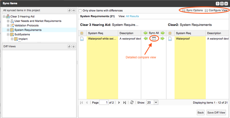 For more information that helps determine whether to sync something, select Detailed compare view for the items you want to compare.