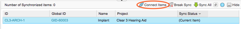You can now perform any of these actions: synchronize items, break synchronization, or connect items.