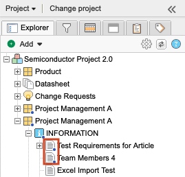 Explorer Tree — Select an item with a blue dot, which indicates that an item was synchronized.