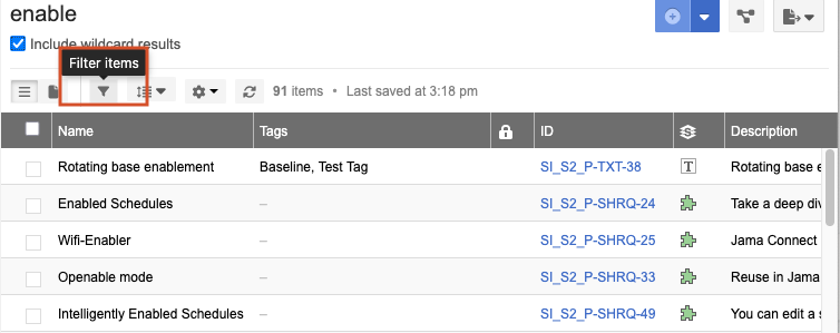 The results of your query appear in a list. To refine your search, select t Filter items (see Filter items for targeted results for details).
