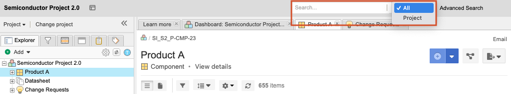 When you need to search across all projects or within a current project, you can enter a simple query in the search field. For more complex searches, use advanced filters.