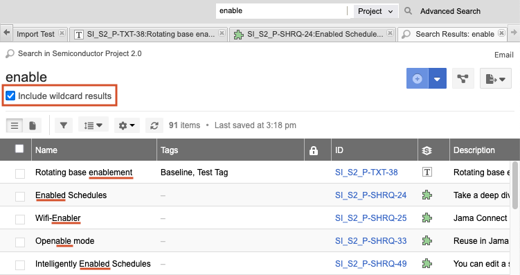 (Optional) Select Include wildcard results to add a wildcard to the front of your search term. For example, if you search for