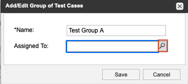 Assigned To – Select Search (magnifying glass icon) to assign a person to run the tests in this group, then select the person's name, and choose Select User.